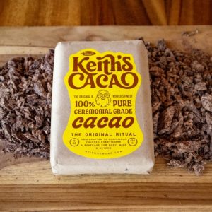 Onze cacao is afkomstig van Keith’s Cacao – het originele merk dat wereldwijd wordt erkend als grondlegger van de moderne ceremoniële cacaobeweging. Deze cacao staat bekend om haar diepe werking, aardende energie en zachte hartopenende kracht.